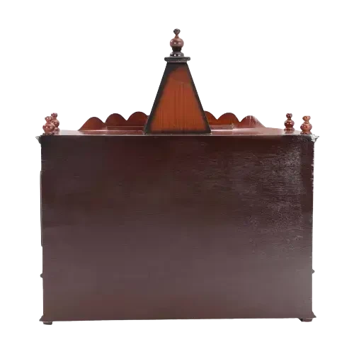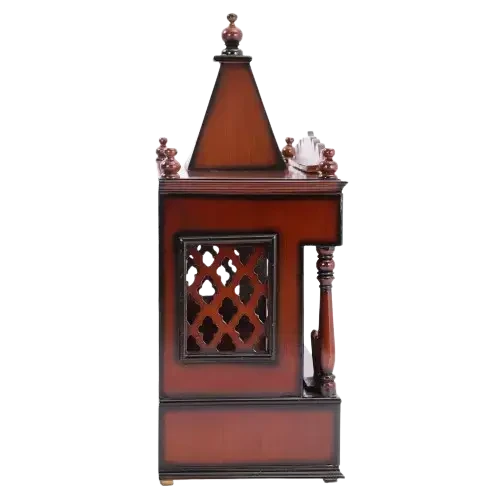 The Sukhatman Wooden Temple made of wood showcases side panels with a lattice pattern that brings a unique touch to its design. These panels allow light to filter through, casting beautiful shadows in your prayer space. The lattice work adds a touch to the temple while also elevating its visual appeal. These side panels serve purposes by allowing air circulation and natural light to enter the wooden temple. This carefully considered design element creates an atmosphere of sacred setting making the temple both a stunning and practical addition to your home.