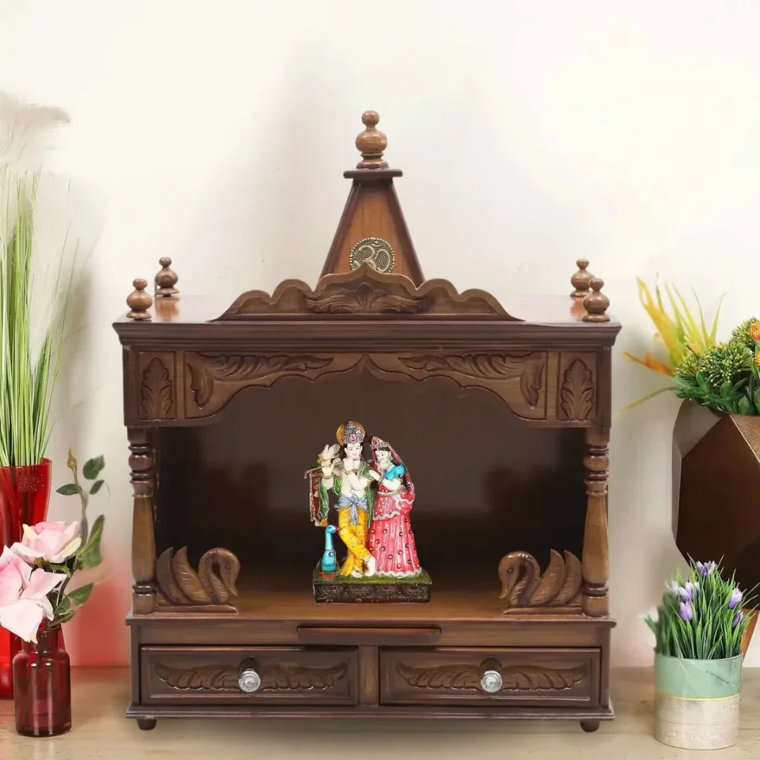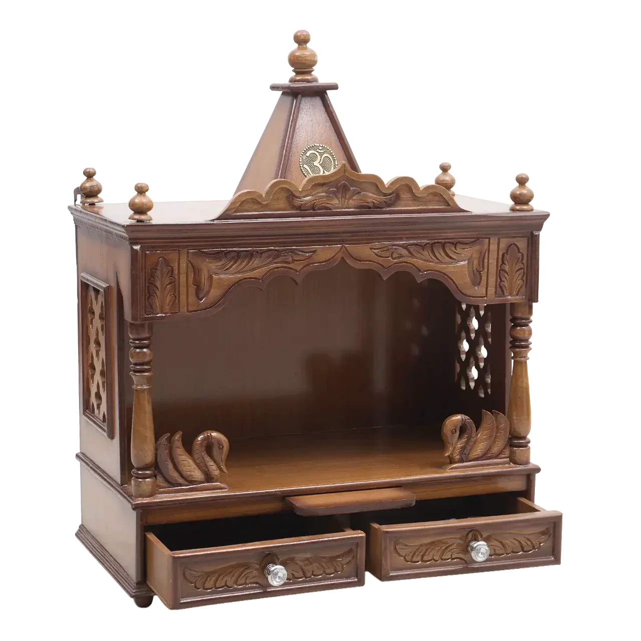 If you want a compact wall mandir for a small apartment or a beautiful wall mandir design for your larger living space, the SukhatMan wall mounted mandir in teak color will be just the right item to select and bring visual and spiritual harmony to your home.