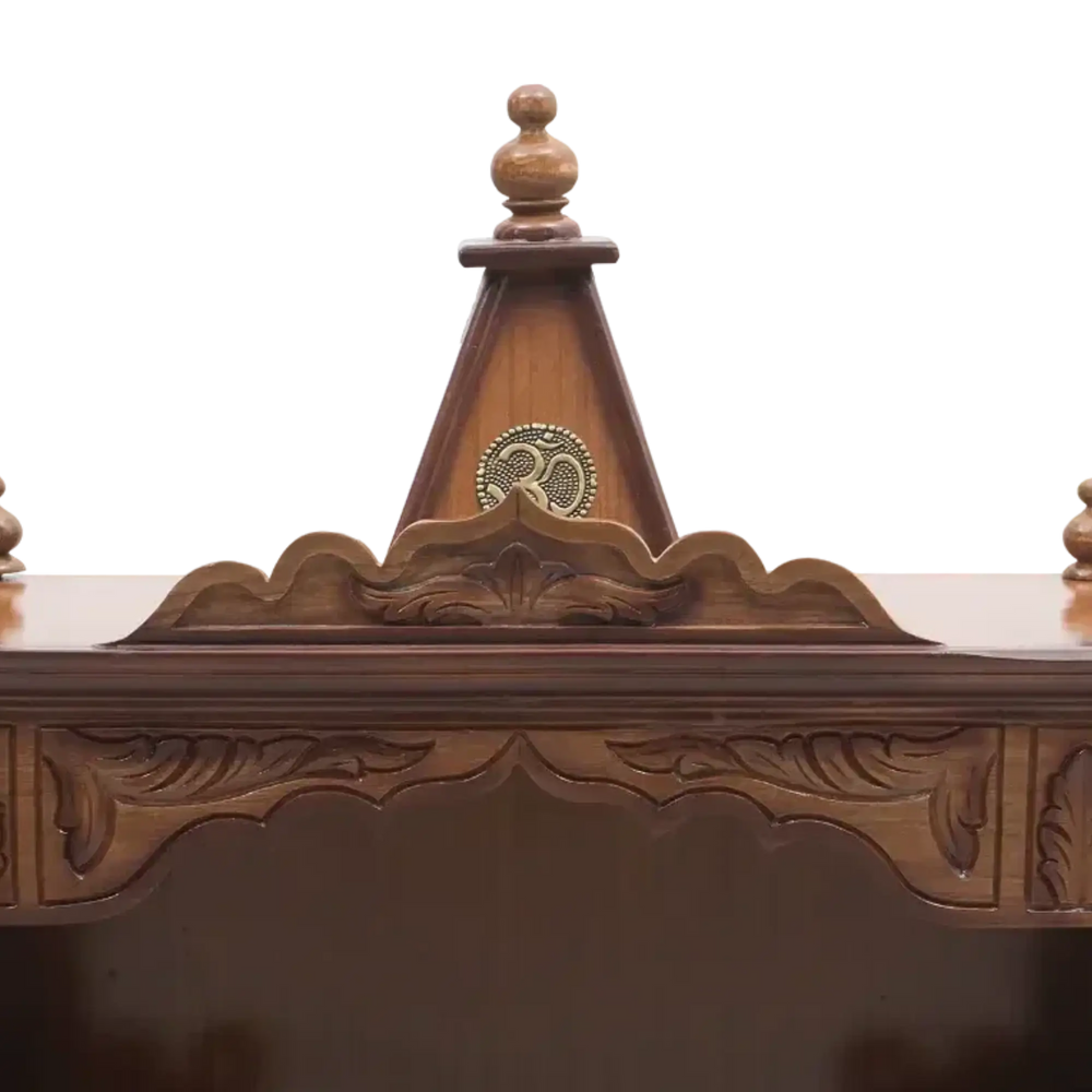 The SukhatMan wall mounted mandir comes with unique features to fit into any given space. The wall mandir design in teak color is tailored to enhance your spiritual practice as well as the mood of your living space.