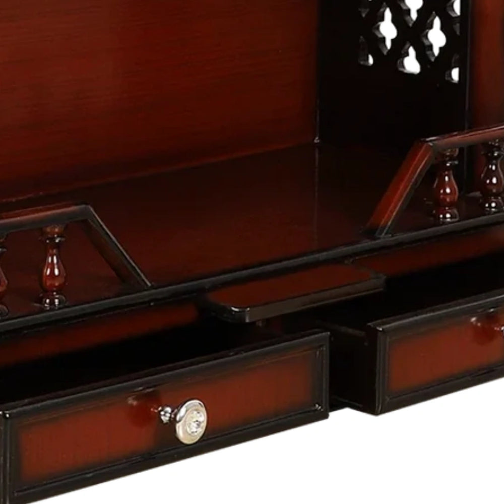 The Mandir is perfect for our home. The craftsmanship is superb, and the medium size fits perfectly in our pooja room. The brown color finish is beautiful, and the two drawers make it easy to keep everything tidy.