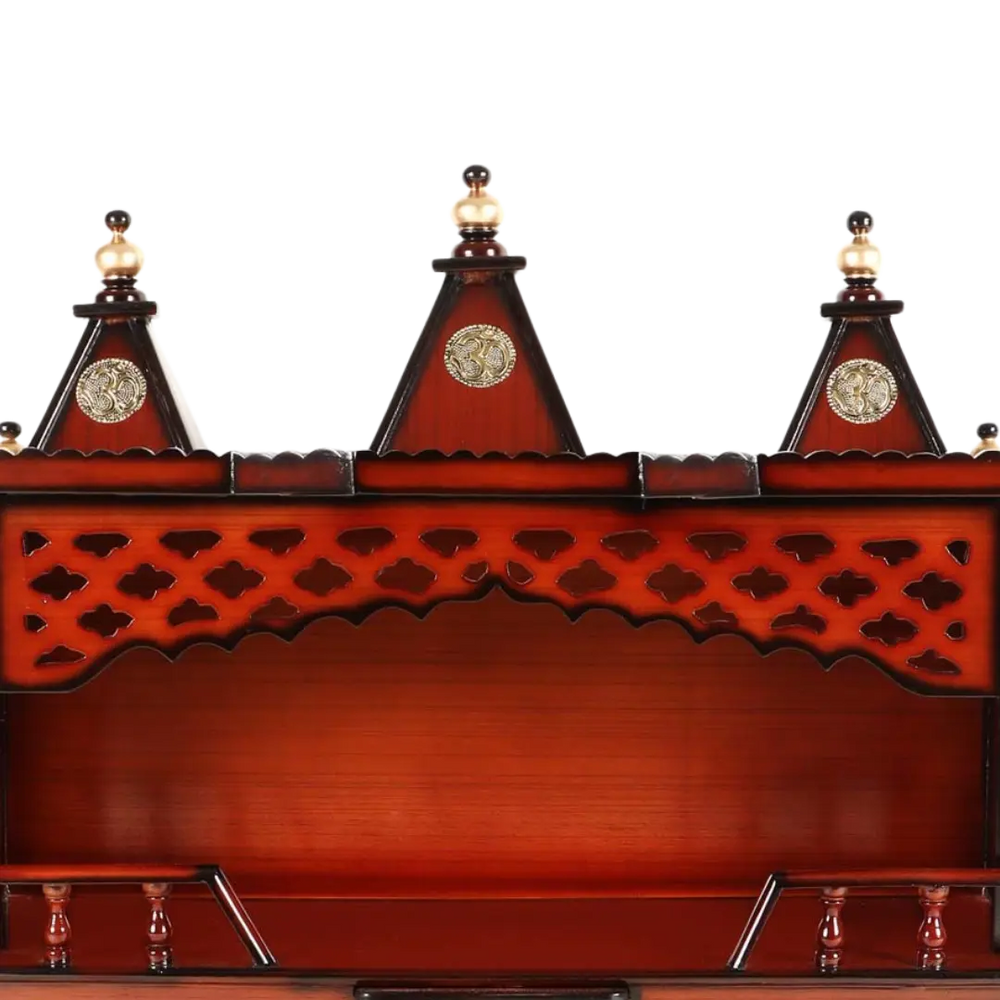 The Mandir is elegant and versatile. The option to use it as a floor-rested or wall-mounted temple is great. The natural gloss finish and rich brown color enhance its traditional appeal.