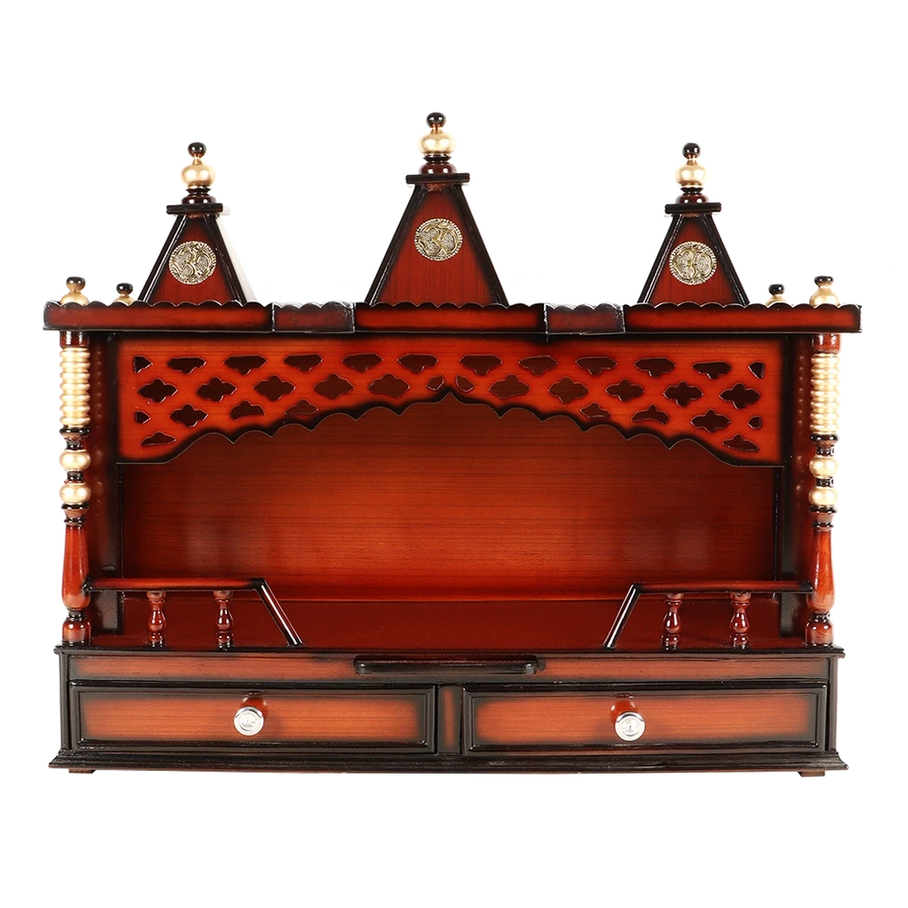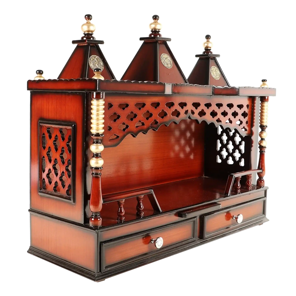 This mandir is perfect for our pooja room. The drawers are convenient for storing accessories. The quality and design are top-notch.