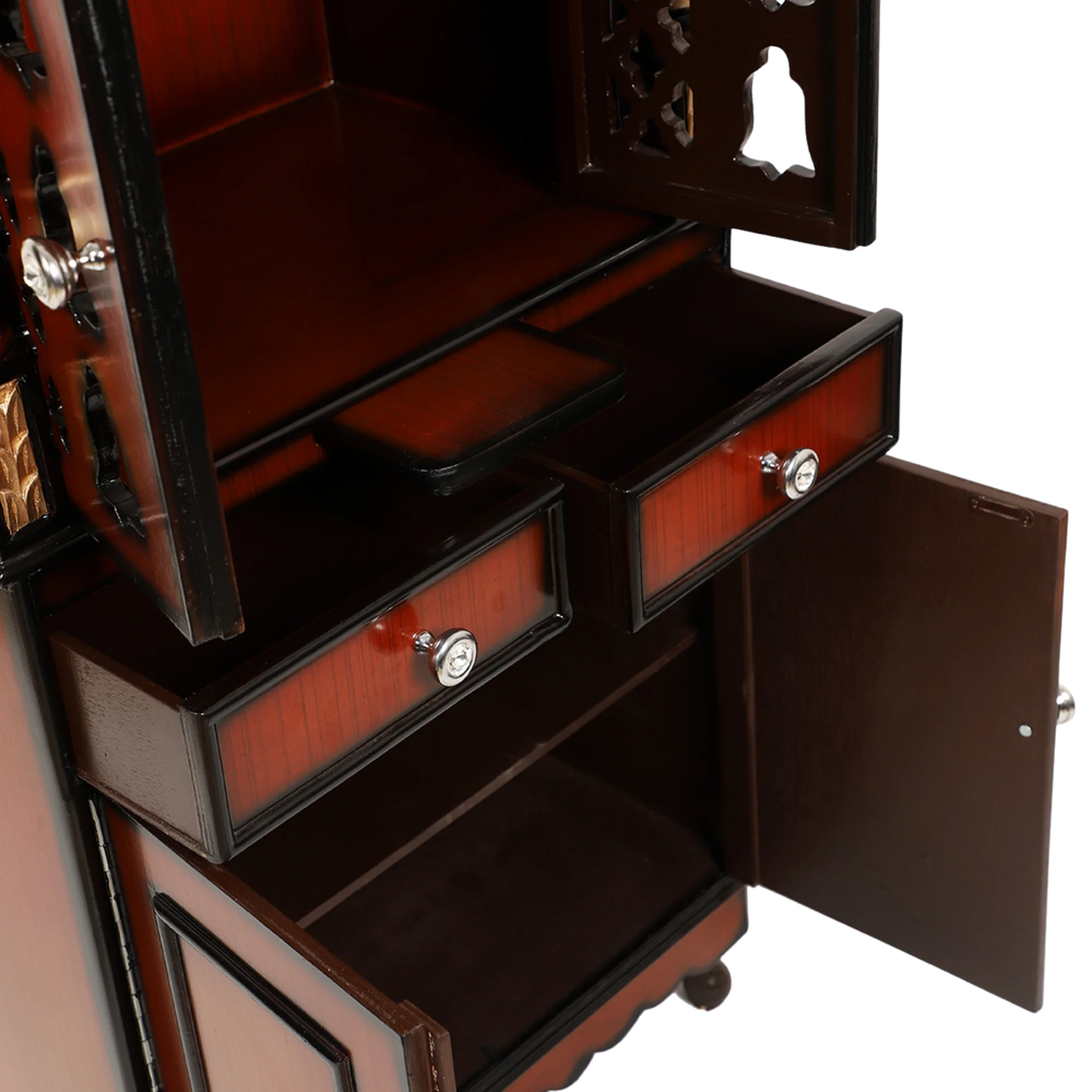 Suramya Floor Rested Pooja Mandap with Door (Brown Gold)