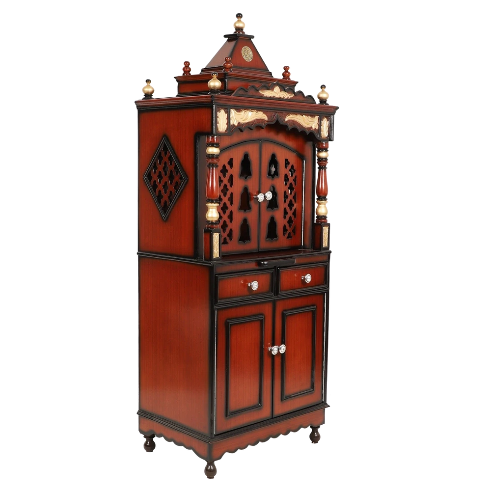 The Pooja Mandir is truly luxurious and functional. The side jali pattern is beautiful, and the two drawers offer ample storage for pooja accessories.