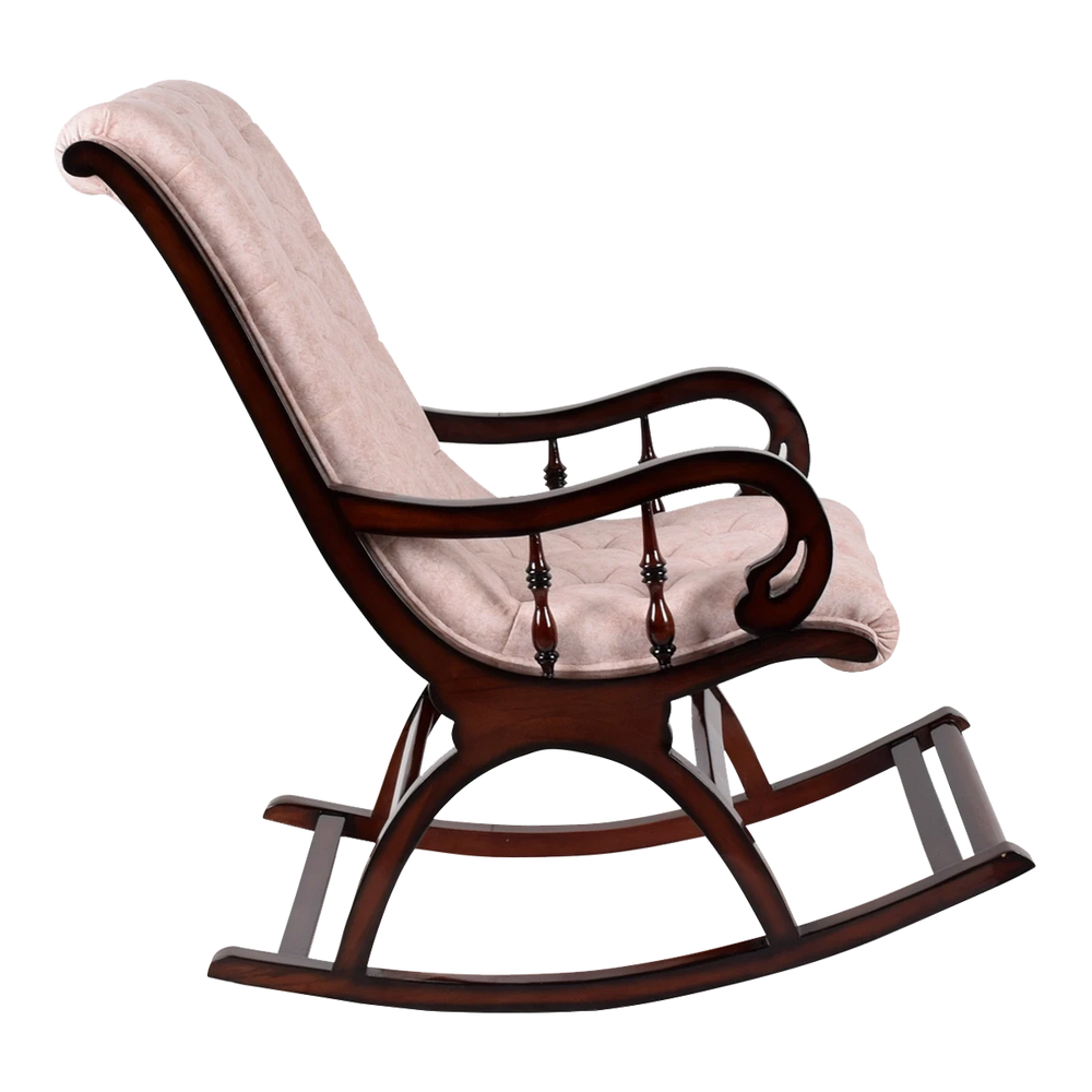 Touffy Fabric Upholstered Teak Wood Rocking Chair (Brown Ivory)