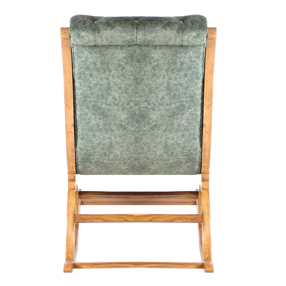 Fabric Upholstered Aaram Chair with Footrest- These fixed resting chairs are the ultimate comfort rocking chairs you can find! The rocking chair is a true representation of modern comfort. The rocking chairs are not only armed with cushioning and top-class fabric upholstery, but they come with a footrest. The design of these 2-part chairs is seamless and looks like a single unit. You can look forward each day to relaxing your entire body. The teak green color of rocking chair complements modern interiors with classic vibes. A living space stays incomplete without this rocking chair. The teak green color complements modern interiors with classic vibes. The footrest has the same satin matte finish and snug cushioning for your feet, paired with the gentle curve of the backrest to experience comfort after a busy day.