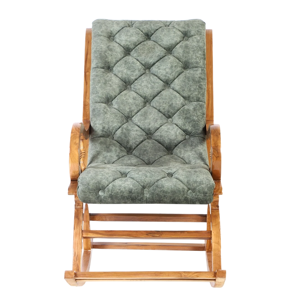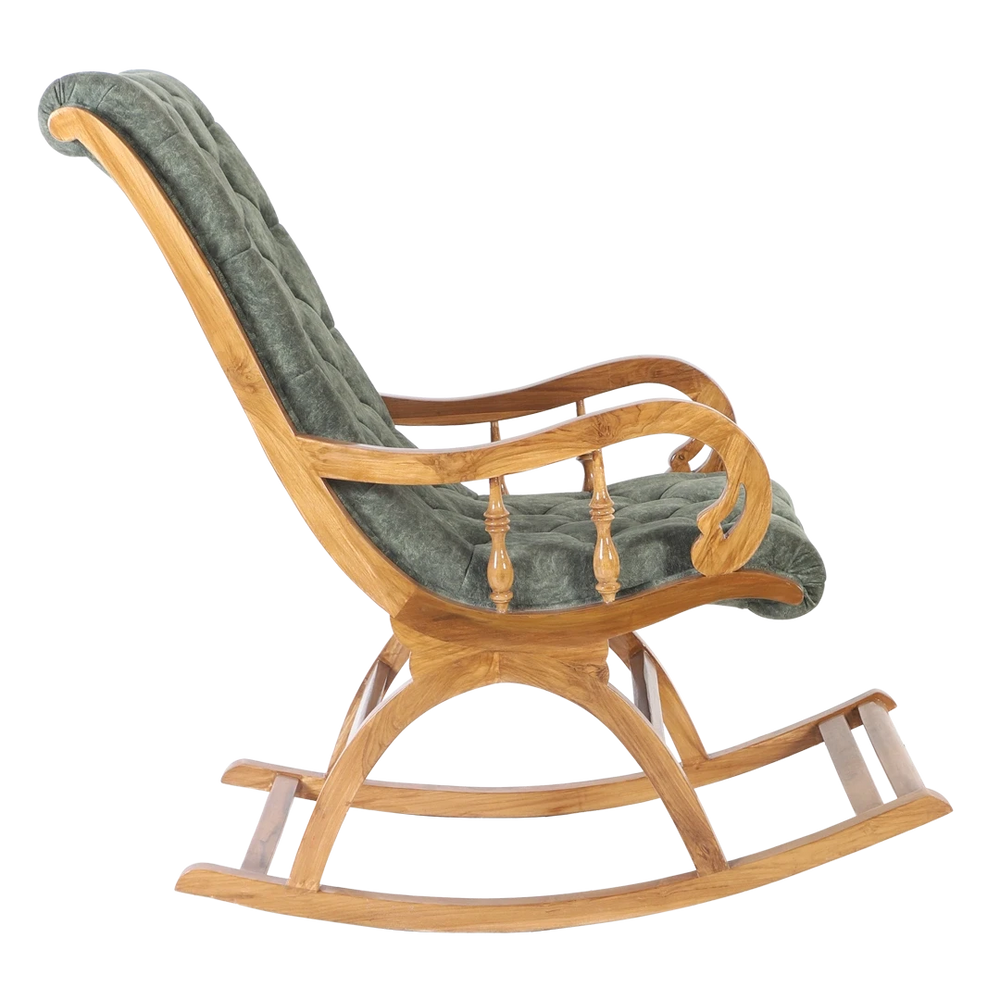 Touffy Fabric Upholstered Teak Wood Rocking Chair (Teak Green)