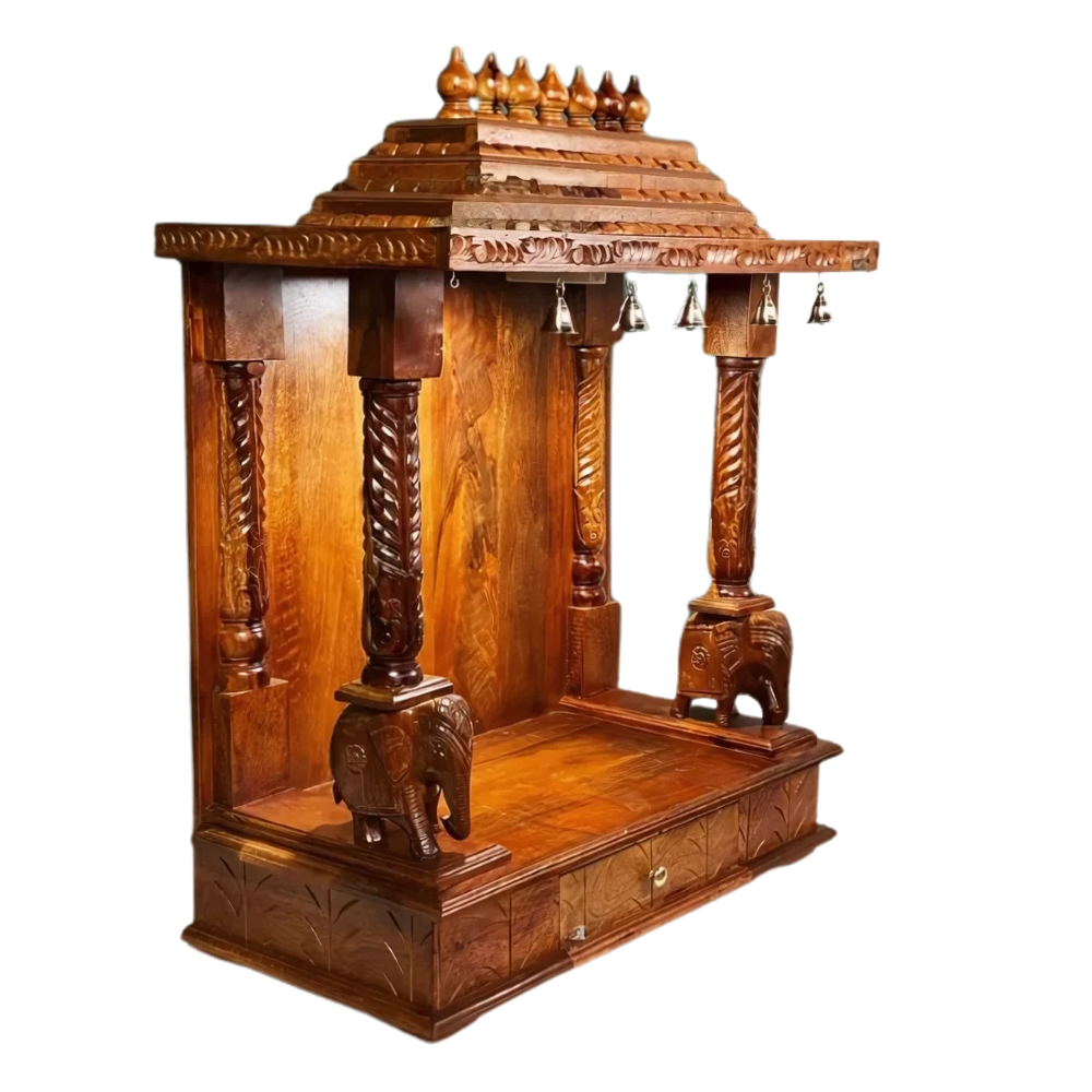 Every DZYN teak mandir is also protected by a 12‑month manufacturing‑defect warranty—we will repair or replace any faulty part at no cost to you