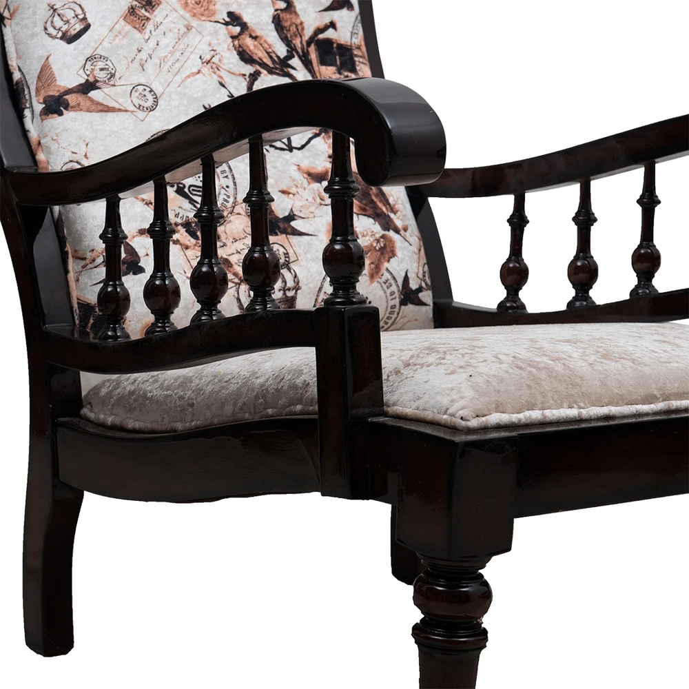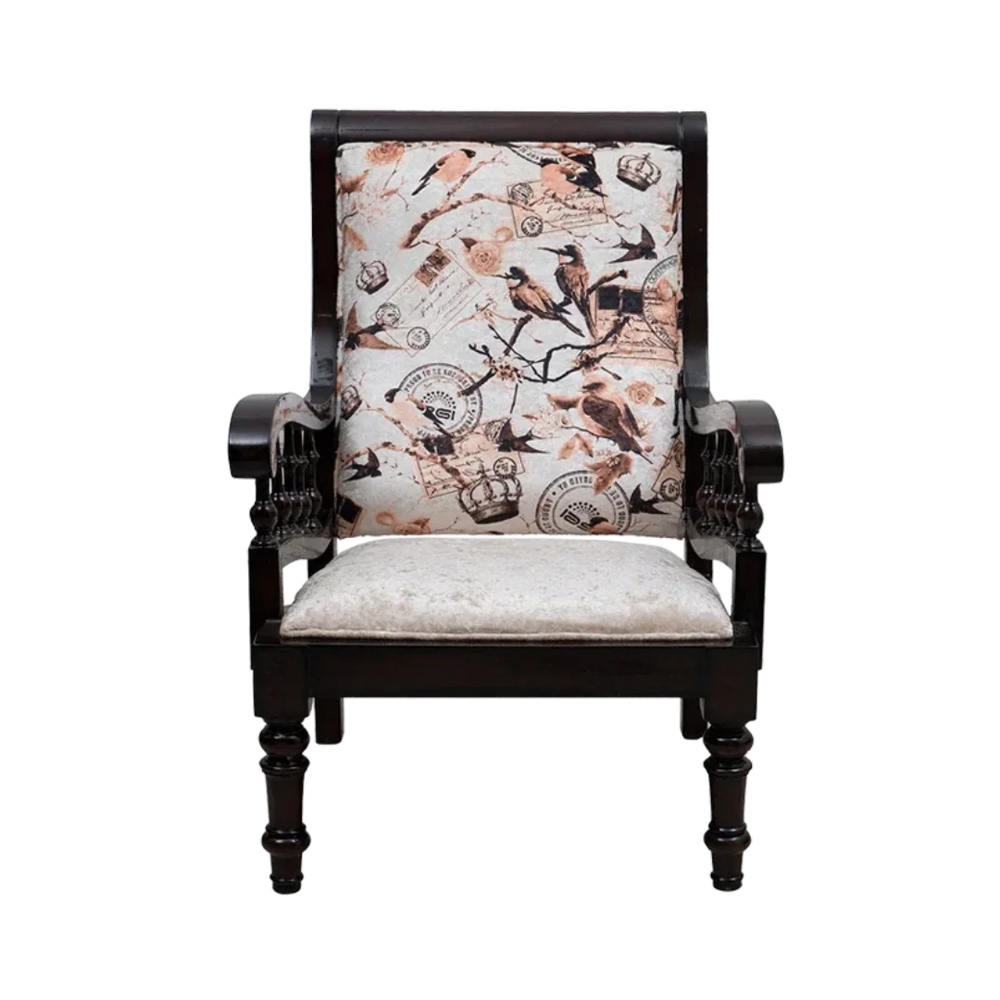 This wooden chair with armrest is the ultimate mix of comfort, beauty and use among wooden chairs. This chair is made with strong teakwood and has soft cushions with good fabric which gives you both strength and comfort at the same time. The unique designs on the fabric complement the teak wood that we use, and it lets you enjoy a fusion of modern and traditional looks that we know and love.