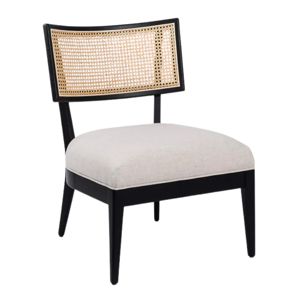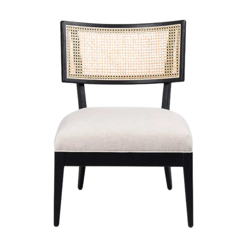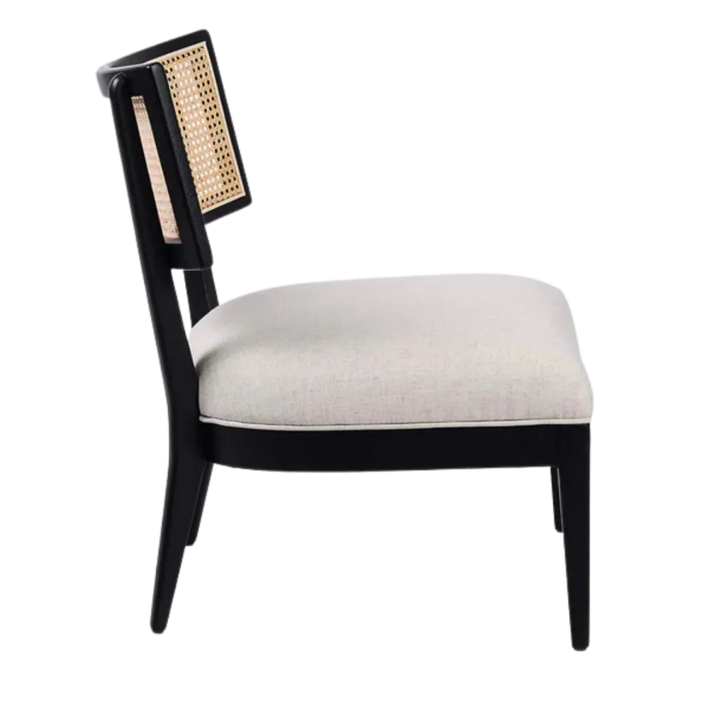 The smart size of the Velixa Lounge Chair makes it perfect for flats and cozy spaces. The chair can be easily carried because of its lightweight frame along with its sturdy structure. You can place this chair as either a living room cane chair or beside a window for reading while it simultaneously provides both aesthetic appeal and practical benefits. The mix of black wood, cane, and neutral fabric fits many home styles. The simple design works well for both formal and casual rooms. Its balanced size fits nicely in corners or with other furniture. This chair adds beauty without taking up too much space in your home.