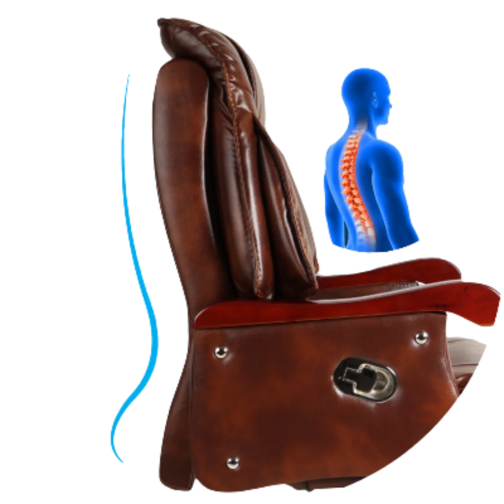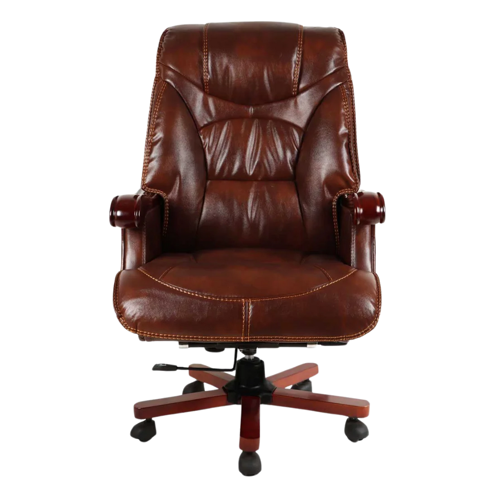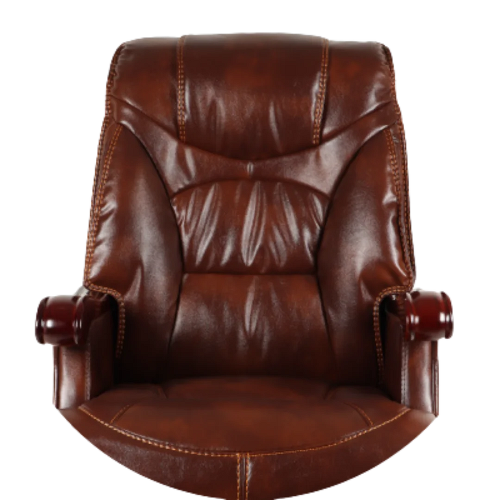 This ergonomic office chair has a high back that supports your full spine. It gives equal comfort to both upper and lower back. The leather design helps you sit straight and feel less tired during the day. It is good for long working hours. The brown color gives a strong and smart look. It matches well with the teak color base. The chair keeps your head and neck in the right position. It is comfortable in all sitting styles. The backrest shape helps reduce body stiffness. You feel light even after sitting for long. It gives good support to your lower back. The high back stops you from slouching. It also helps you breathe better.
