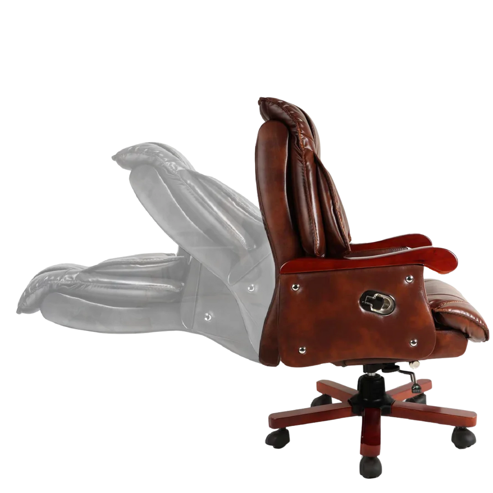 The extra wide seat gives you more space to sit freely without feeling tight. The thick padding supports your hips and thighs well. The brown color cover looks good in modern rooms. The seat keeps its shape even after sitting for long hours. It reduces pressure on your lower back. It is comfortable during long calls or when writing. The seat is good for big and tall people. It also matches well with the teak color parts of the chair. The seat does not sink over time. It feels soft but also gives strong support. The wide seat lets you move easily. It stays firm and keeps its shape for a long time.