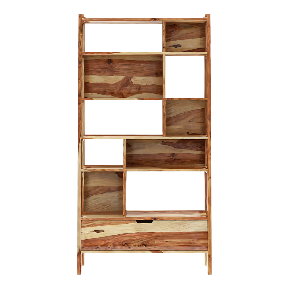 The different shelf sizes ensure that this unit can accommodate the storage of books, plants, art pieces and storage boxes. It can serve either as an efficient book holder or a beautiful, practical display. Its design is suited to living rooms, offices and study rooms. The drawer provides flexibility by having hidden storage. It is perfectly suited to work environments as well as the home. When it comes to accessibility, the open arrangement saves a lot of time as things are readily available. Ideal to display collectables and books. Its flexibility means it will stay useful if storage requirements alter. You may also feature seasonal or thematic decorations or displays. The modular design mixes well with changing room designs.